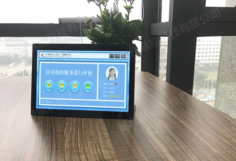9)功能:支持多種格式廣告播放功能,視頻、文字、圖片等、時間日期、通知、公告等,員工照片、星級顯示,辦事人員評價等;