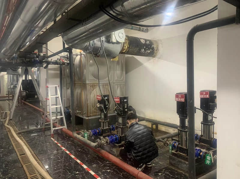 三、消音器安裝:在水泵和風(fēng)機(jī)的出口管道上安裝消音器,降低流體動(dòng)力噪音的產(chǎn)生。同時(shí),對(duì)關(guān)鍵設(shè)備的進(jìn)、出口進(jìn)行柔性連接,減少振動(dòng)和噪音的產(chǎn)生。
